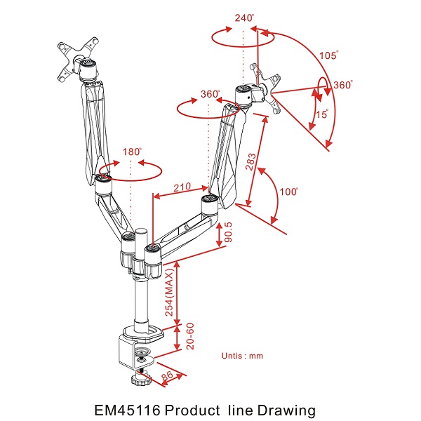 雙螢幕雙延伸臂夾桌式設計,任意調整視角與距離
