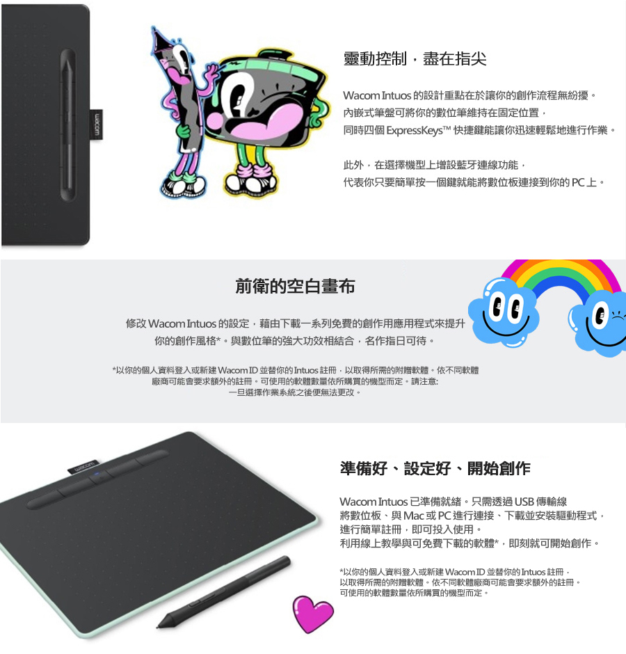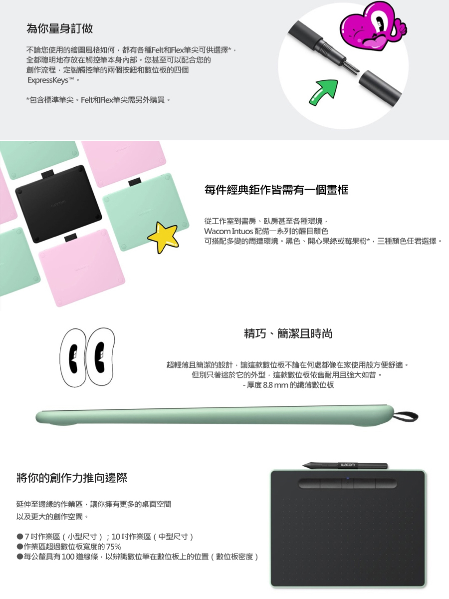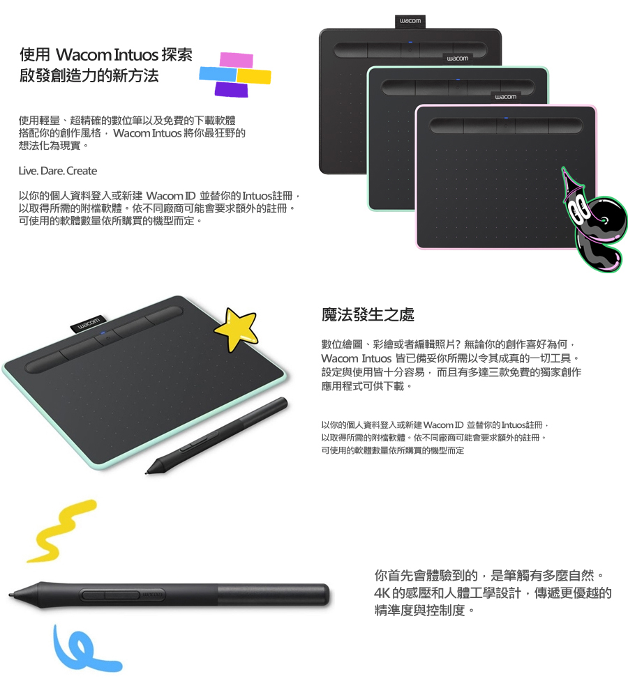• WACOM Intuos Basic 入門版繪圖板(黑)/4096階/小
