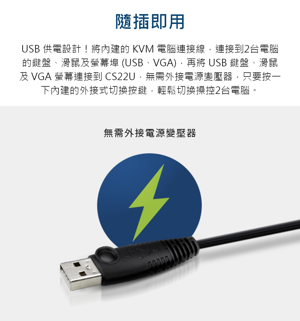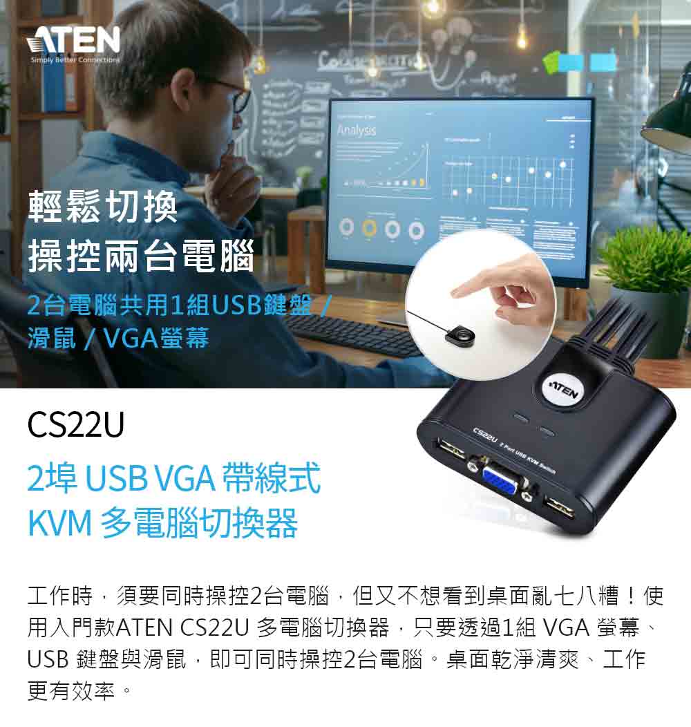 • ATEN CS22U【2埠-USB】D-SUB.外接式切換按鍵.支援多平台