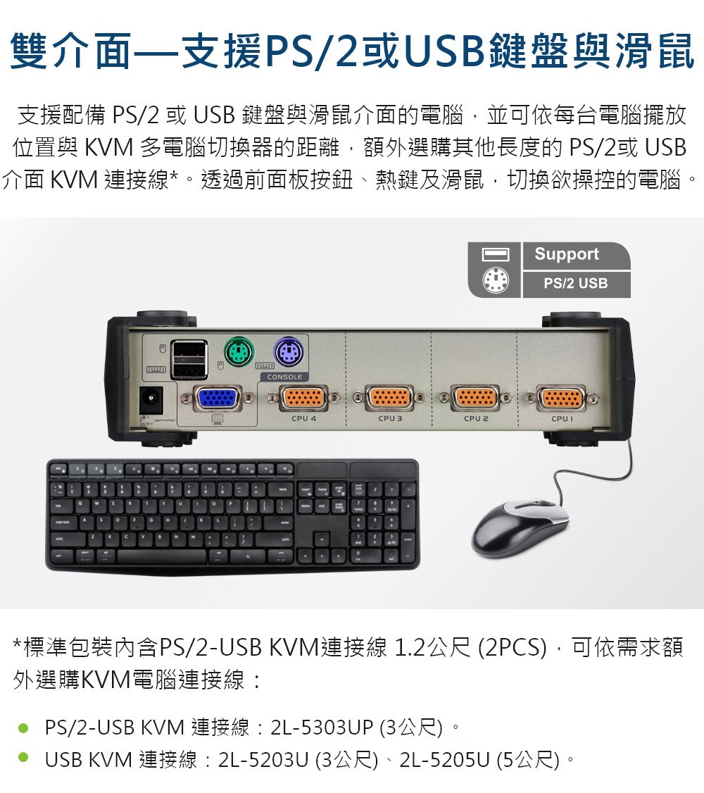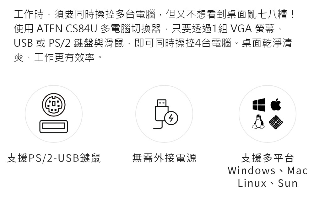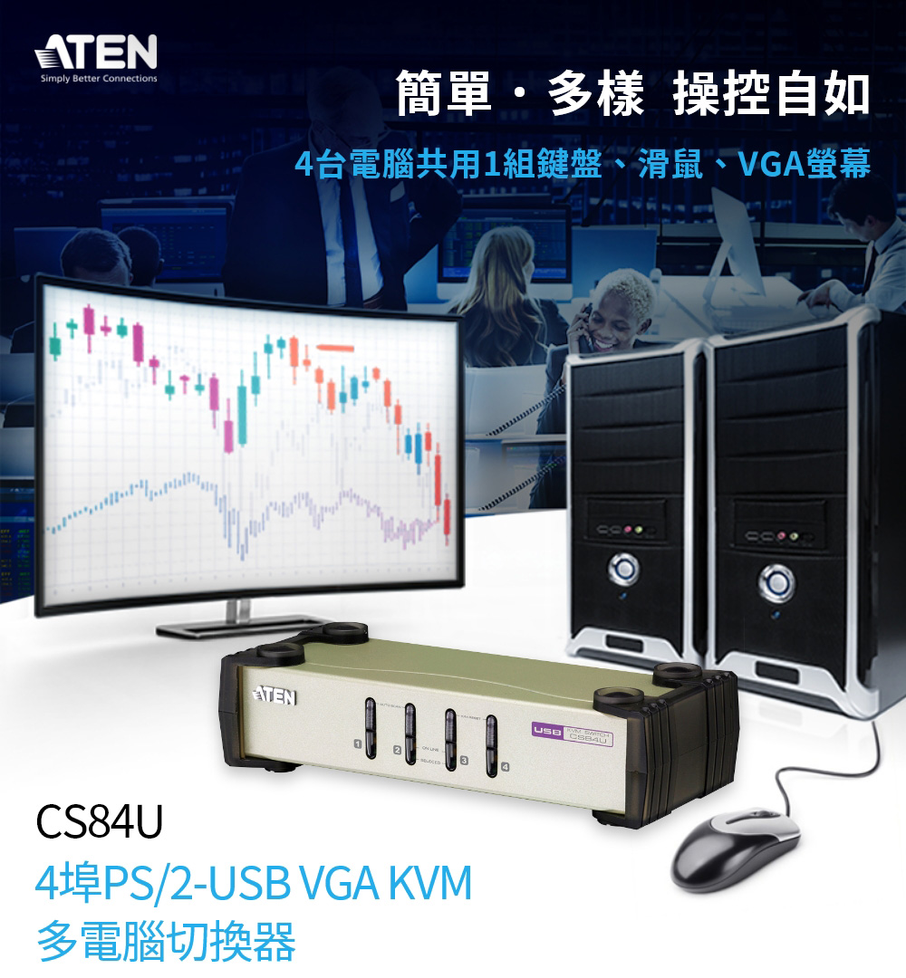 • ATEN CS84U【4埠-USB+PS2】D-SUB.面板切換.支援多平台