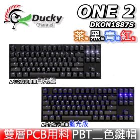 Ducky One 2 87鍵 機械式鍵盤/有線/茶軸/中文/PBT/白光