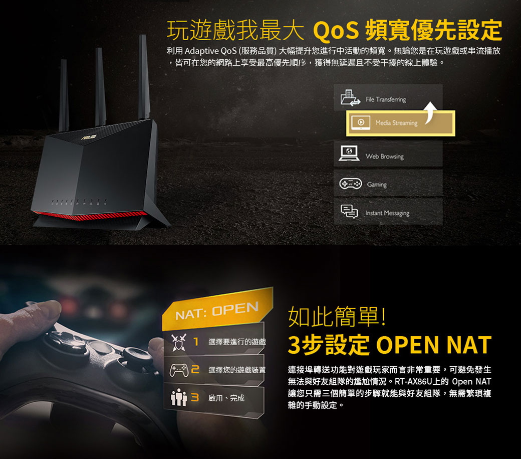 華碩 RT-AX86S (AX5700/雙頻/3x天線/4x1GbE/聚合2GbE/支援AiMesh/趨勢防毒)