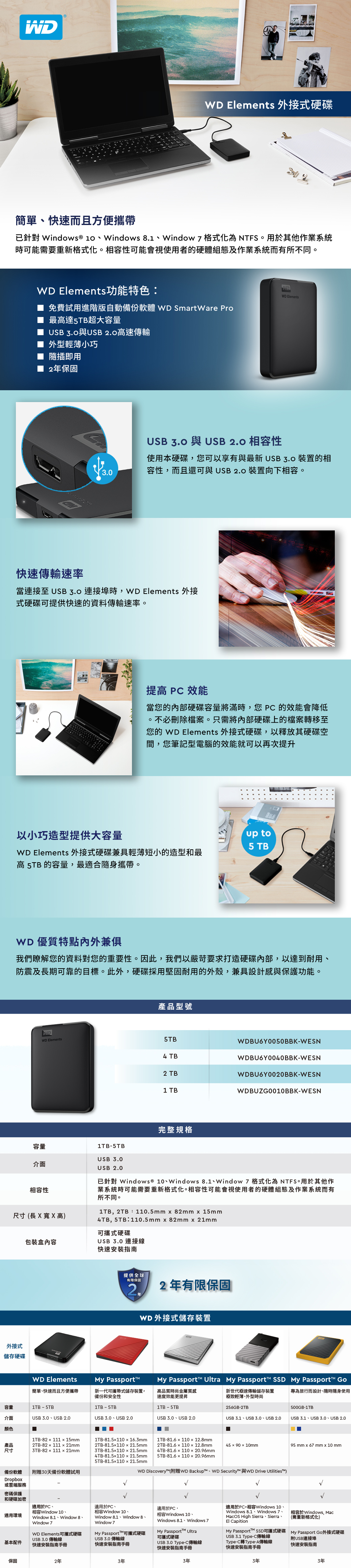 • WD 5TB(黑)Elements(USB3.1 Gen1/二年保)