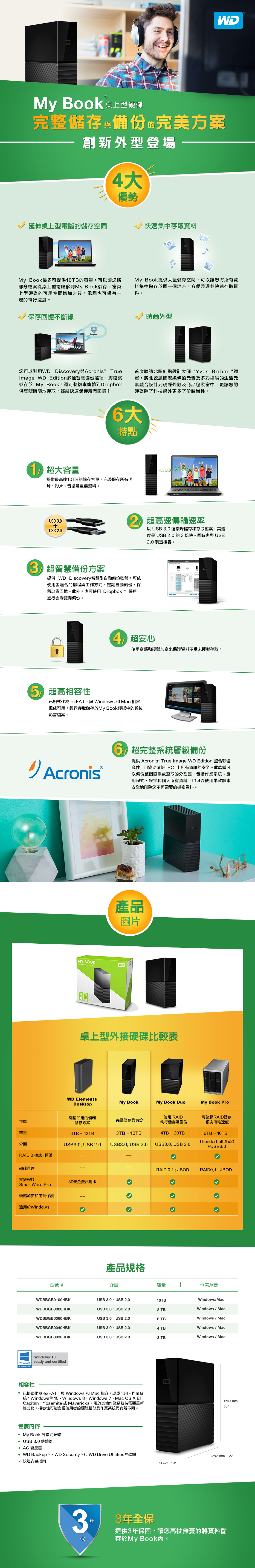 • WD My Book 10TB【3.5吋外接】(USB3.1 Gen1/三年保)