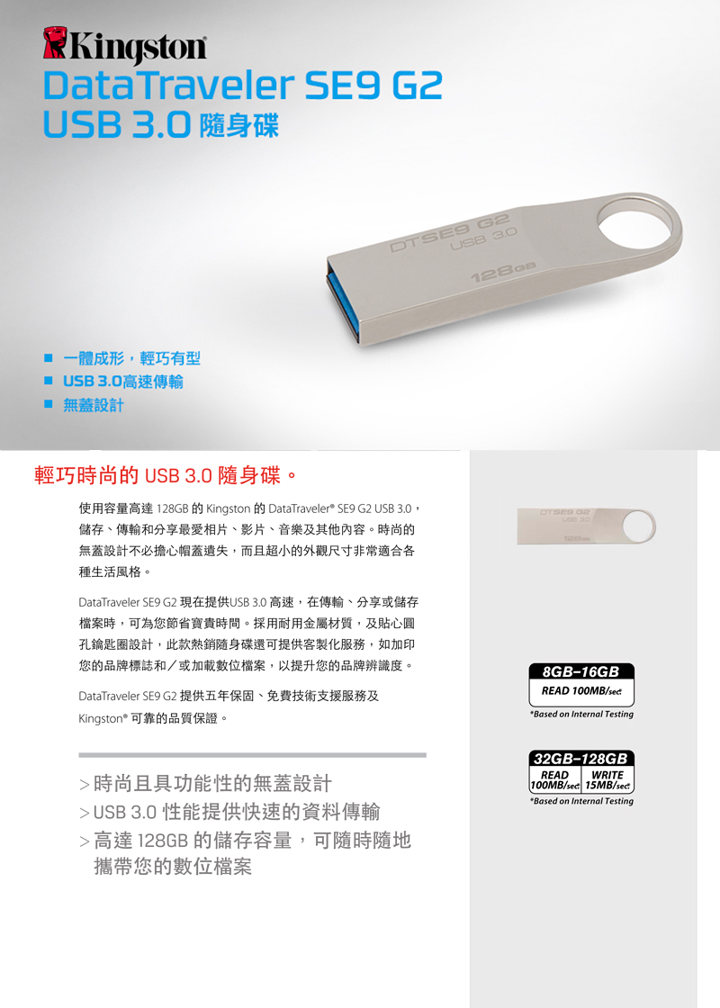 • 金士頓 32G DataTraveler SE9 G2 金屬鑰匙環USB3.2