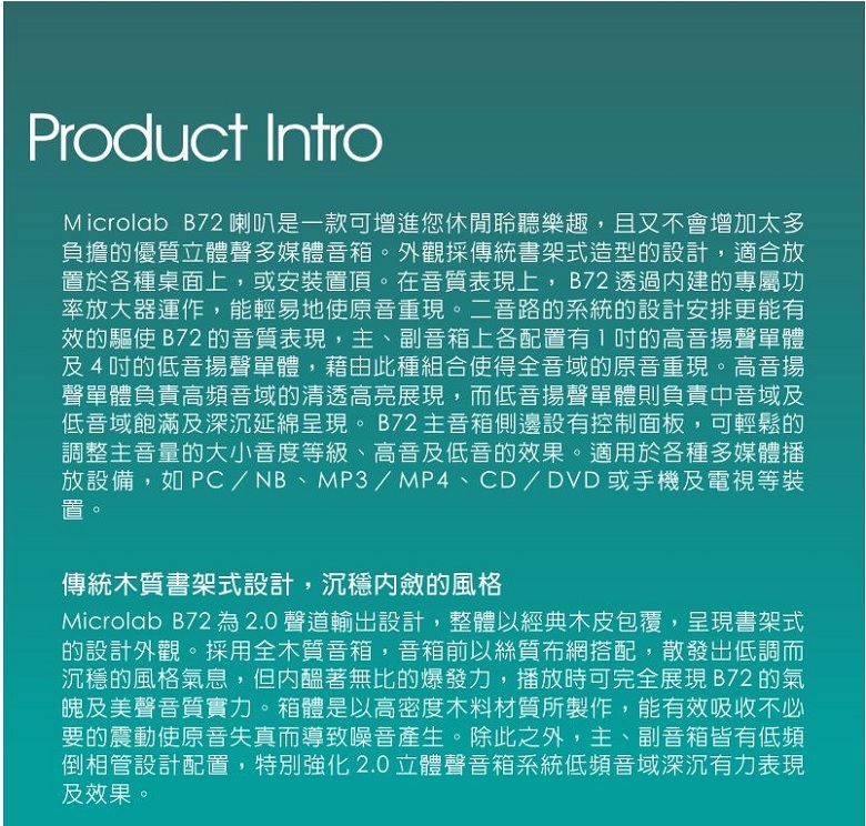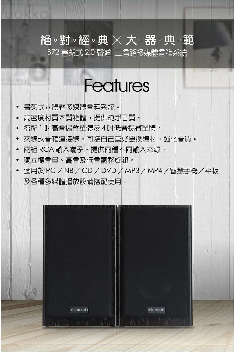 • Microlab B72 書架式 2.0 聲道 二音路多媒體音箱