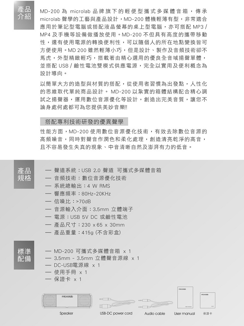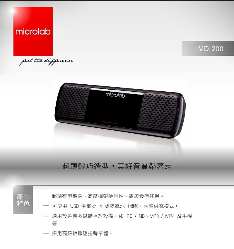 • Microlab MD 200 USB 2.0聲道可攜式多媒體音箱