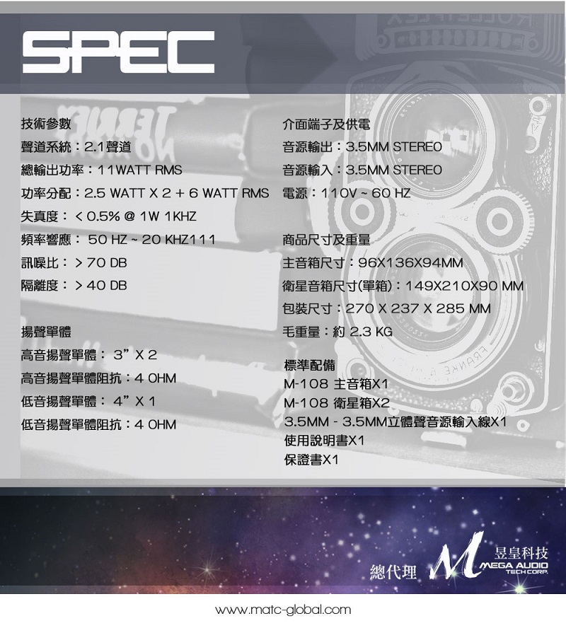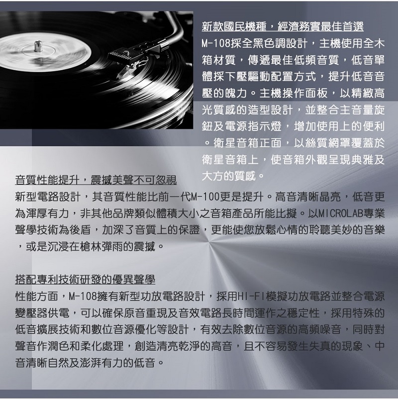 • Microlab M-108 2.1多媒體喇叭(新國民機種)