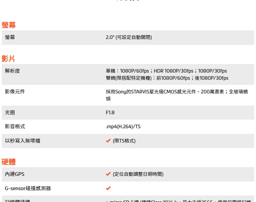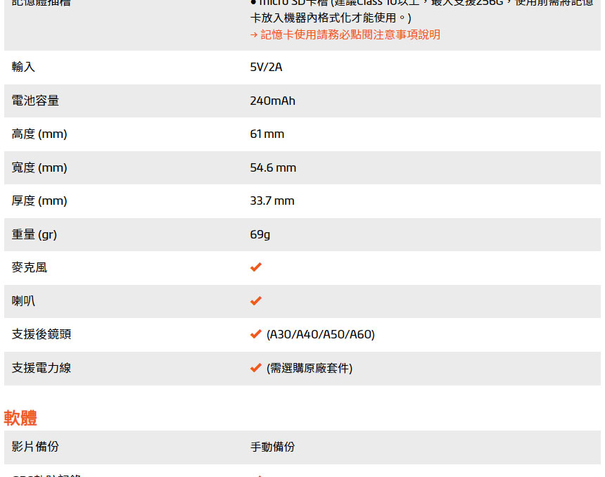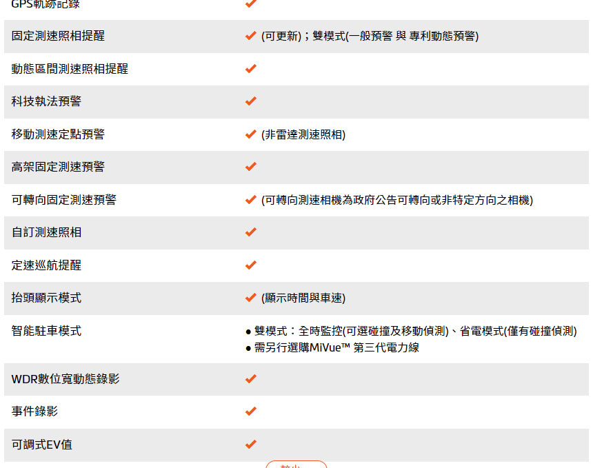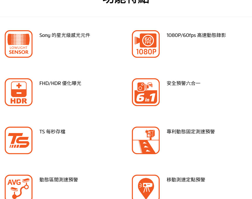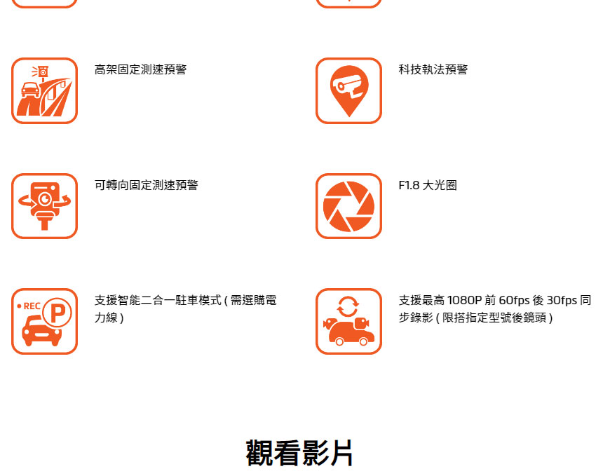 二合一駐車模式-需選購電力線 / 支援後鏡頭-限搭配A系列 / micro SD 最大支援256G安全預警六合一:一般與專利動態,動態區間測速,科技執法,高架固定測速,移動測速定點,可轉向固定測速