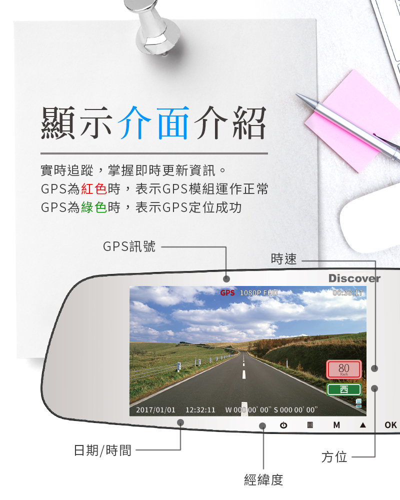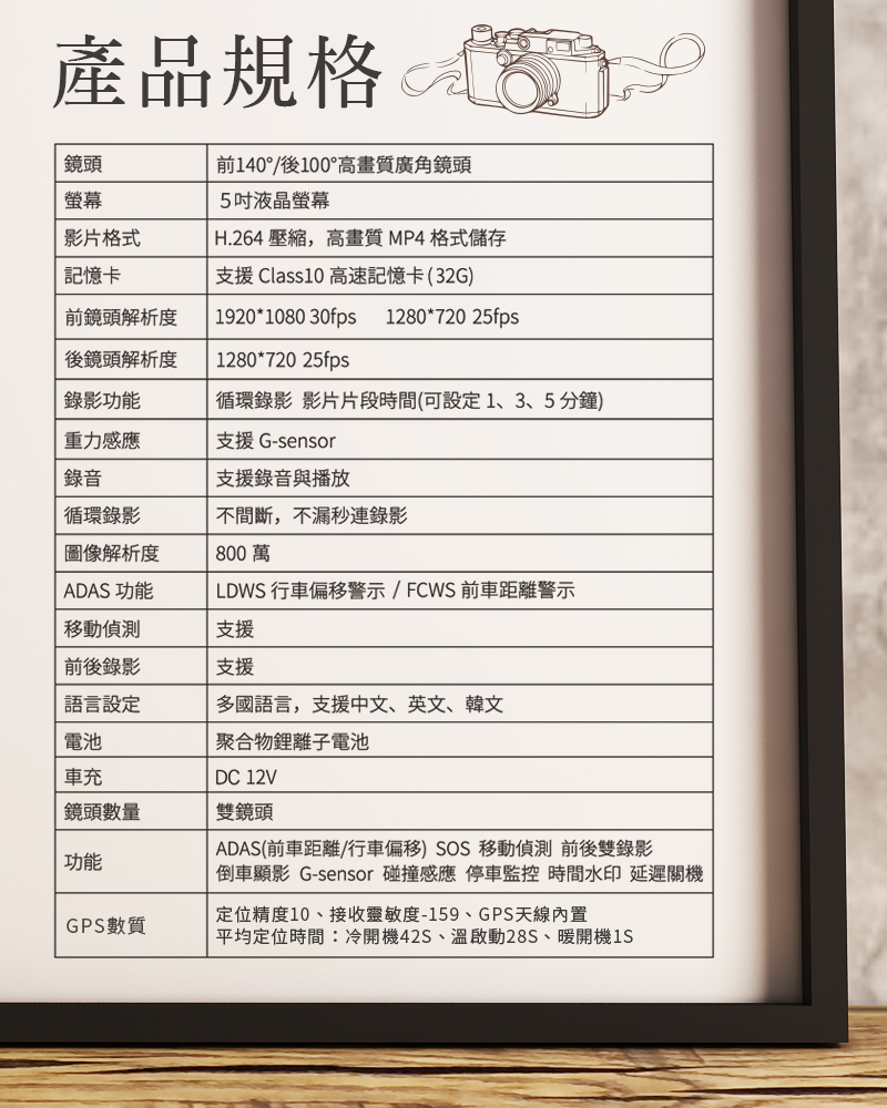 【G566】5吋GPS前後雙鏡測速+ADAS後視鏡行車記錄器 重點介紹
