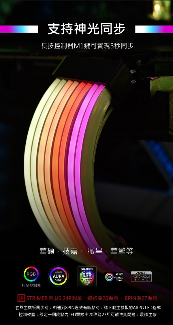 【發光電源線】聯力 Strimer Plus 24Pin RGB 延長線